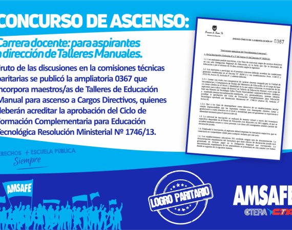 Fruto de las discusiones en la comisiones técnicas paritarias se publicó la ampliatoria 0367 que incorpora maestros/as de Talleres de Educación Manual para ascenso a...