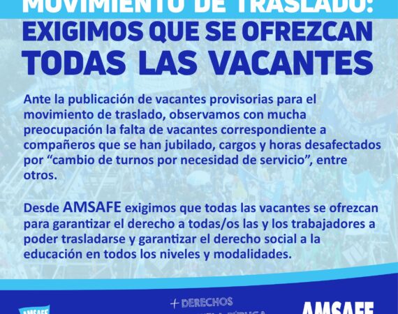 MOVIMIENTO DE TRASLADO: EXIGIMOS QUE SE OFREZCAN TODAS LAS VACANTES