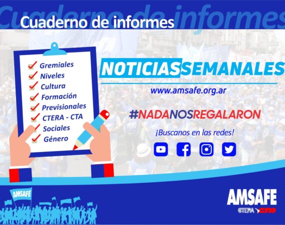 Desde AMSAFE ponemos a disposición «Cuaderno de Informe» con las últimas noticias sindicales de la semana 27/08/22 al 03/09/22 (Click en cada título para ingresar...