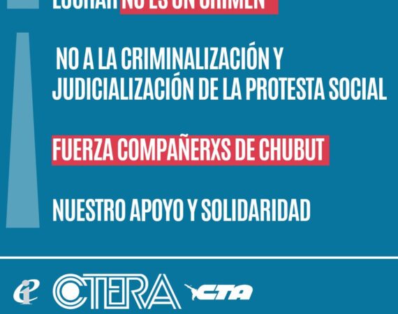 ¡ NO A LA PERSECUCIÓN, CRIMINALIZACIÓN Y JUDICIALIZACIÓN DE LA PROTESTA SOCIAL EN CHUBUT ! CTERA HARÁ UNA PRESENTACIÓN ANTE LA SECRETARÍA DE DERECHOS HUMANOS...