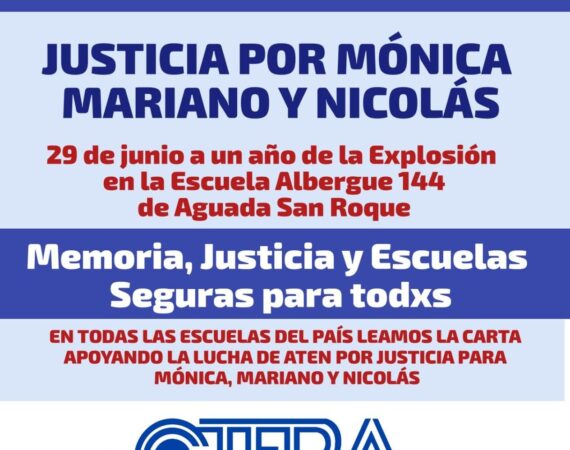 Texto para leer en las escuelas el día 29 de Junio. A un año de la Explosión en la Escuela Albergue 144 de Aguada San...