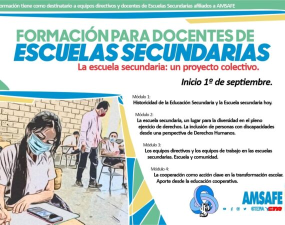 Desde AMSAFE lxs invitamos a participar de la nueva FORMACIÓN PARA DOCENTES DE ESCUELAS SECUNDARIAS. Con esta iniciativa nos proponemos crear un espacio para la...
