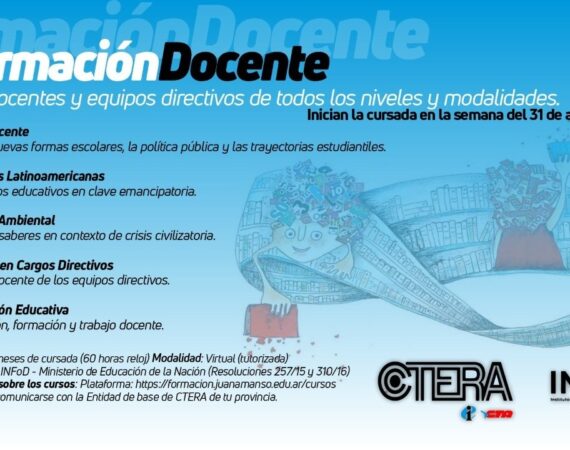 Se abre la inscripción de los cursos para Docentes y Equipos Directivos de todos los niveles y modalidades organizados por CTERA-INFoD. Para informes e inscripción:...