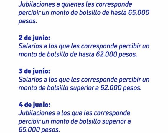 HABERES Y JUBILACIONES MAYO 2021 31 de mayo: Jubilaciones a quienes les corresponde percibir un monto de bolsillo de hasta 65.000 pesos. 2 de junio:...