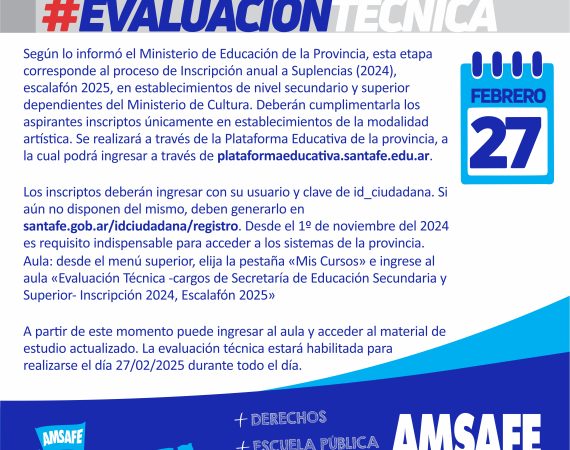 EVALUACIÓN TÉCNICA. INSCRIPTOS A SUPLENCIAS DE CARGOS DE SECRETARÍA DE MODALIDAD ARTÍSTICA