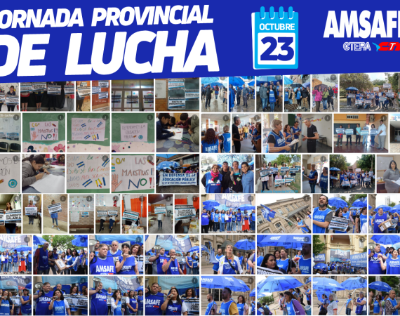 Este 23/10 en el marco de la Resolución de la Asamblea Provincial de AMSAFE, que definió rechazar la propuesta paritaria y realizar jornadas de protesta,...