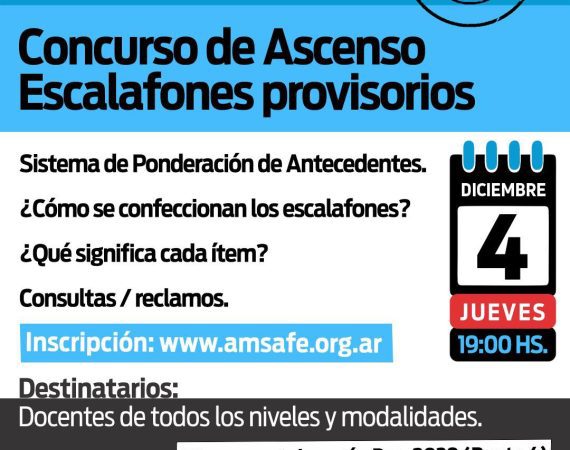 AMSAFE invita a todas y todos los afiliados a participar de la Jornada de Formación sobre los Escalafones Provisorios del Concurso de Ascenso, que se...