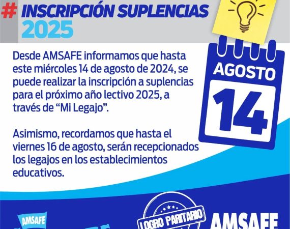 Este lunes 19 de agosto, AMSAFE realizó la presentación de la medida cautelar, ante el Ministerio de Educación y Economía, que ordena la suspensión de...