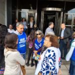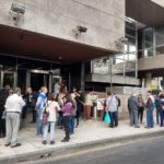 AMSAFE/CTA de lxs Trabajadorxs de Santa Fe presentes este jueves 28 de marzo junto al Foro Contra la Impunidad y por la Justicia de Santa Fe y compañerxs de las distintas organizaciones que lo componen en la puerta del Tribunal Oral Federal de Santa Fe en el inicio de un nuevo juicio por delitos de lesa humanidad.