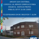 Martes 30 – 10:00hs – Bv. Irigoyen y Alem – Abrazo simbólico para exigir el edificio propio para el ISP N° 26 de Ceres.