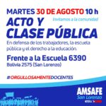 Martes 30 – 10:00hs – Frente a la Escuela 6390 (Bolivia 2575 – San Lorenzo) Acto y Clase Pública en defensa de los trabajadores, la escuela pública y el derecho a la educación.