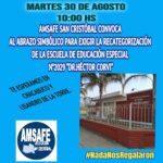 - 10:00hs – Chacabuco y Lisandro de la Torre – Abrazo simbólico para exigir la recategorización de la Escuela Especial N° 2029