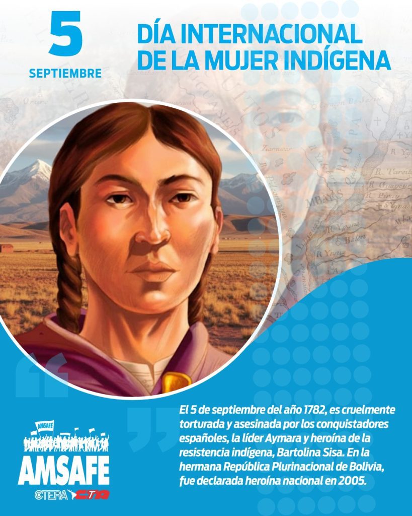 El 5 de septiembre del año 1782, es cruelmente torturada y asesinada por los conquistadores españoles, la líder Aymara y heroína de la resistencia indígena, Bartolina Sisa. En su memoria, la fecha fue establecida como el Día de la Mujer Indígena, declarada en 1983 por el Segundo Encuentro de Organizaciones y Movimientos de América.