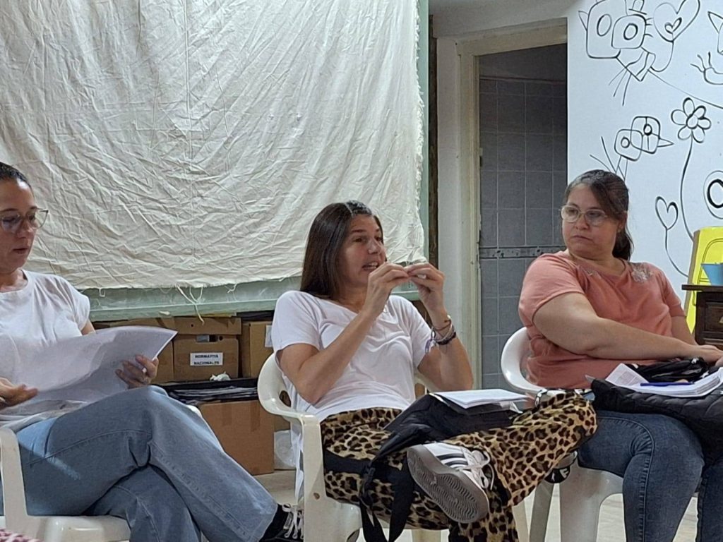La propuesta tuvo como dispositivo de organización una mesa redonda donde cada participante socializo el trabajo practico realizado y los/as demás participantes tenian la oportunidad de realizar preguntas, sugerencias y comentarios.