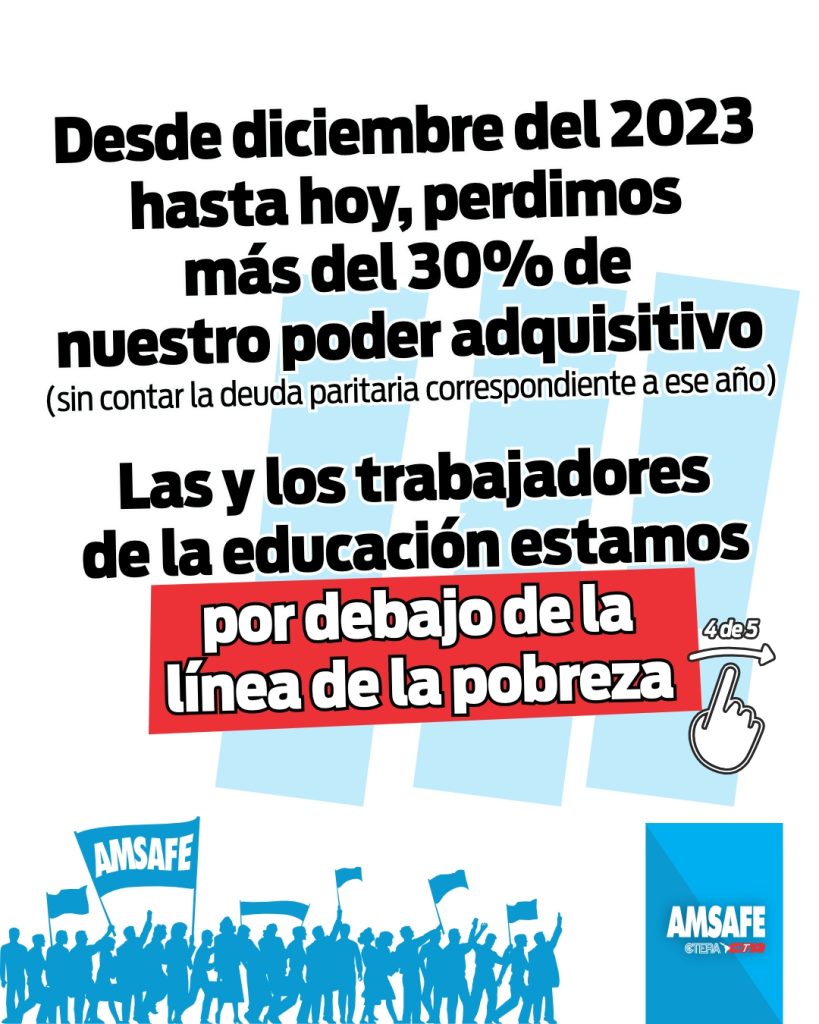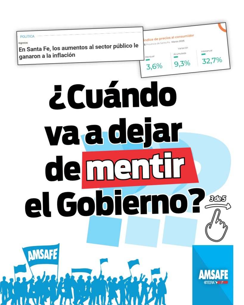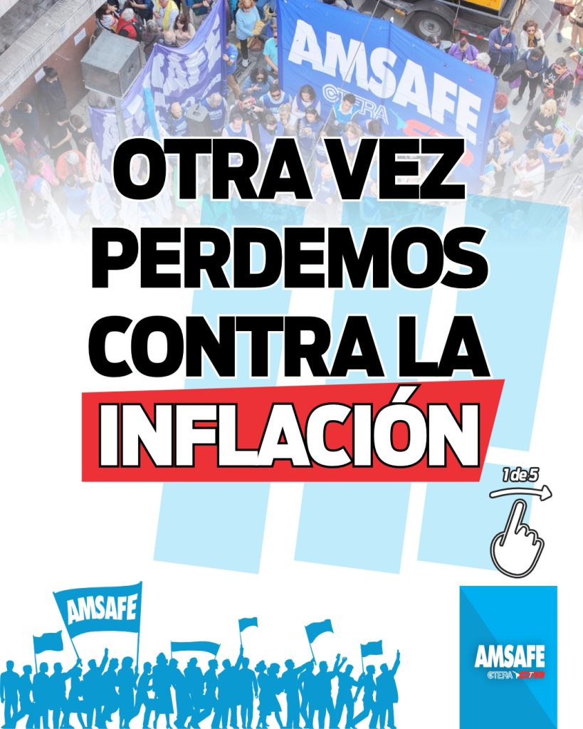Desde AMSAFE advertimos que el aumento salarial otorgado en marzo vuelve a ubicarse por debajo de la inflación registrada en la provincia de Santa Fe, profundizando la pérdida del poder adquisitivo de las y los trabajadores de la educación.