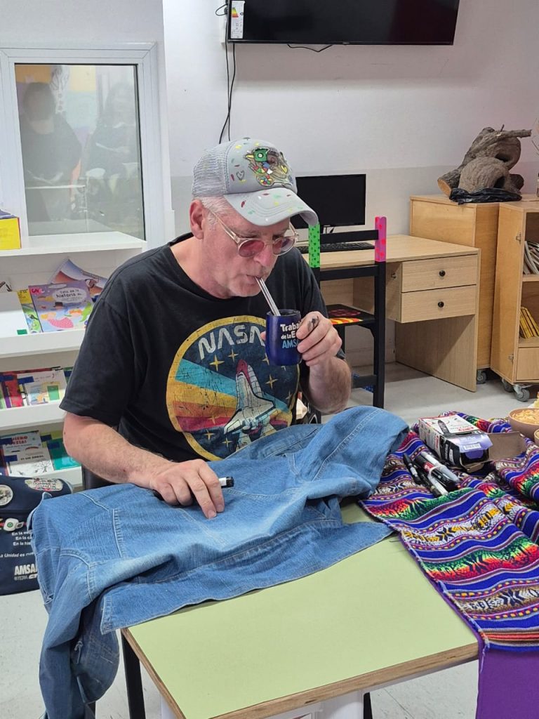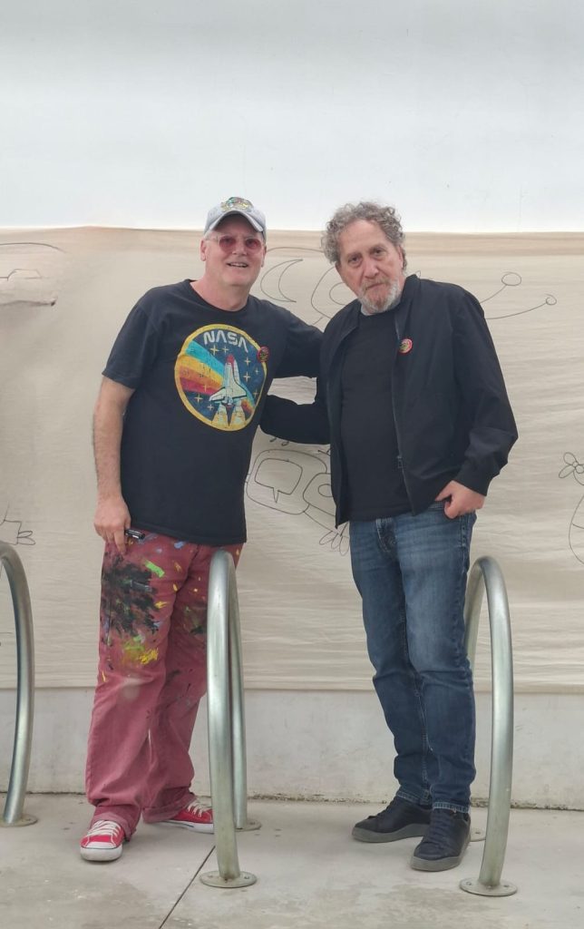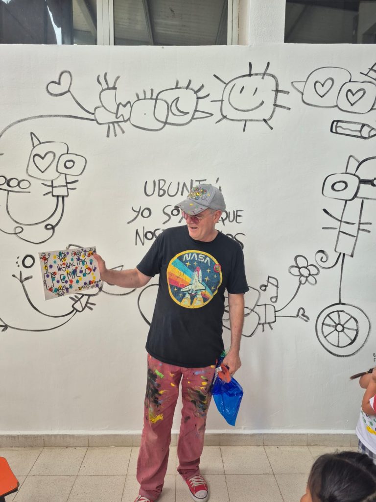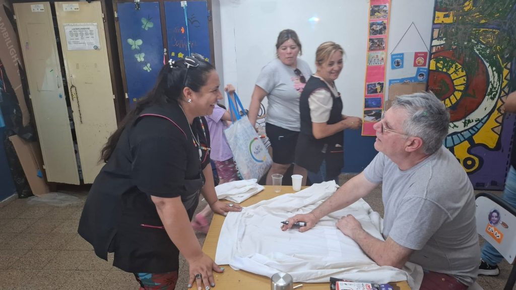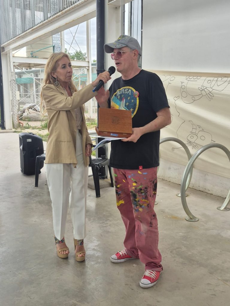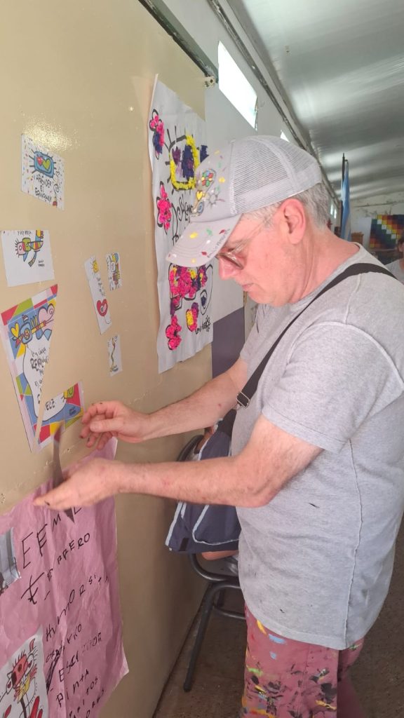 En este marco, el artista también participó del “1er. Congreso Educativo Interseccional”, realizado en la Escuela Nº 1409. Allí, Ferrero realizó una intervención artística en una bandera itinerante.