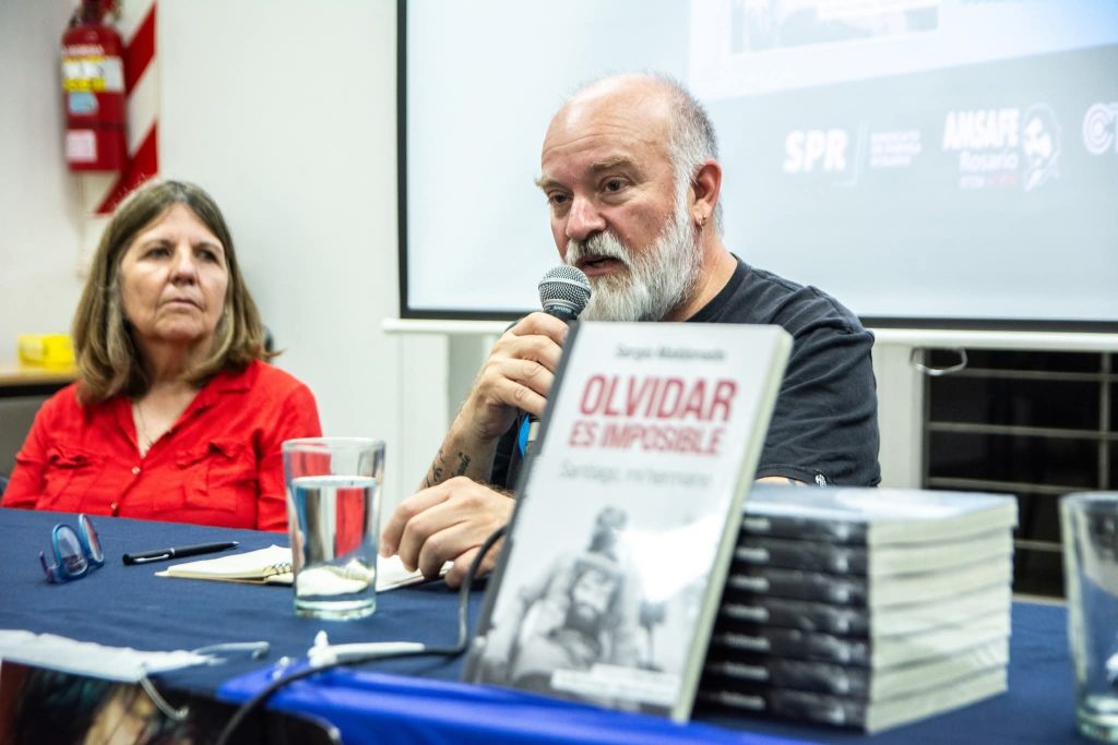 Este jueves 23 de octubre, en la sede del Sindicato de Prensa Rosario, se realizó la presentación del libro “Olvidar es imposible. Santiago, mi hermano”, escrito por Sergio Maldonado, un testimonio profundo sobre la búsqueda de justicia y memoria tras la desaparición forzada de Santiago Maldonado.