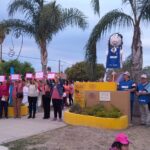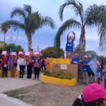 La actividad incluyó la siembra de flores, el abrazo al hospital, una caminata hasta la escultura “Brillo de mujer”, danza e iluminación rosada sobre el edificio.