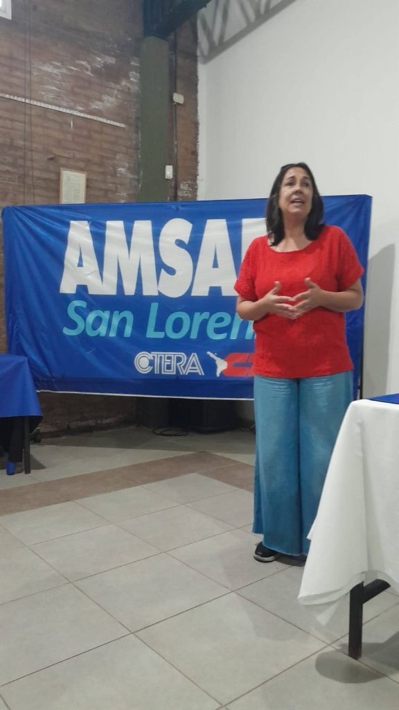 En la apertura, Adriana Monteverde, Delegada Seccional y Cecilia Saldaña, Secretaria de DDHH de AMSAFE Provincial, manifesraron la importancia de esta formación, la defensa de los derechos humanos e instaron a seguir construyendo memoria desde las aulas y el sindicato, en unidad con otras organizaciones sociales.